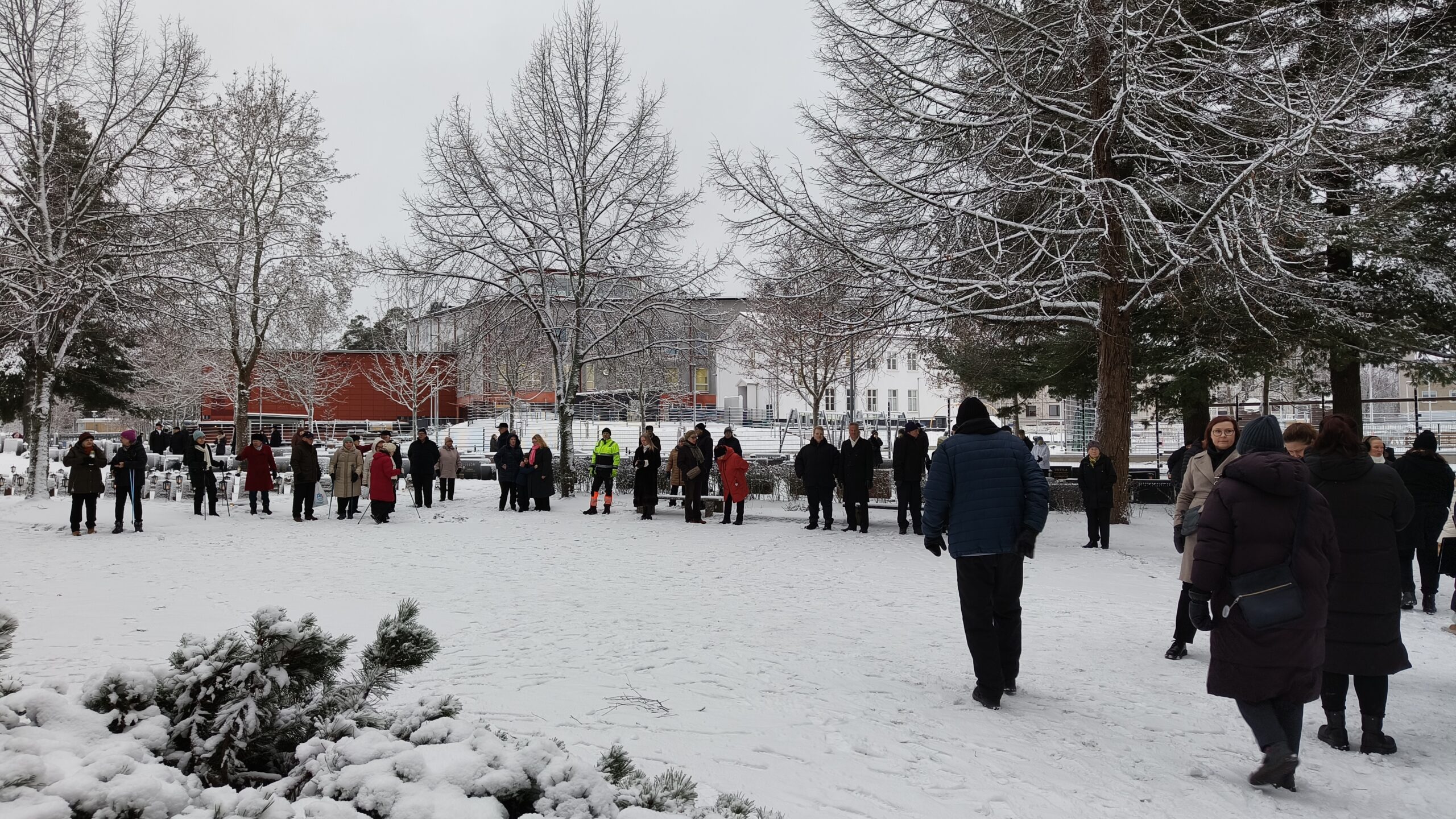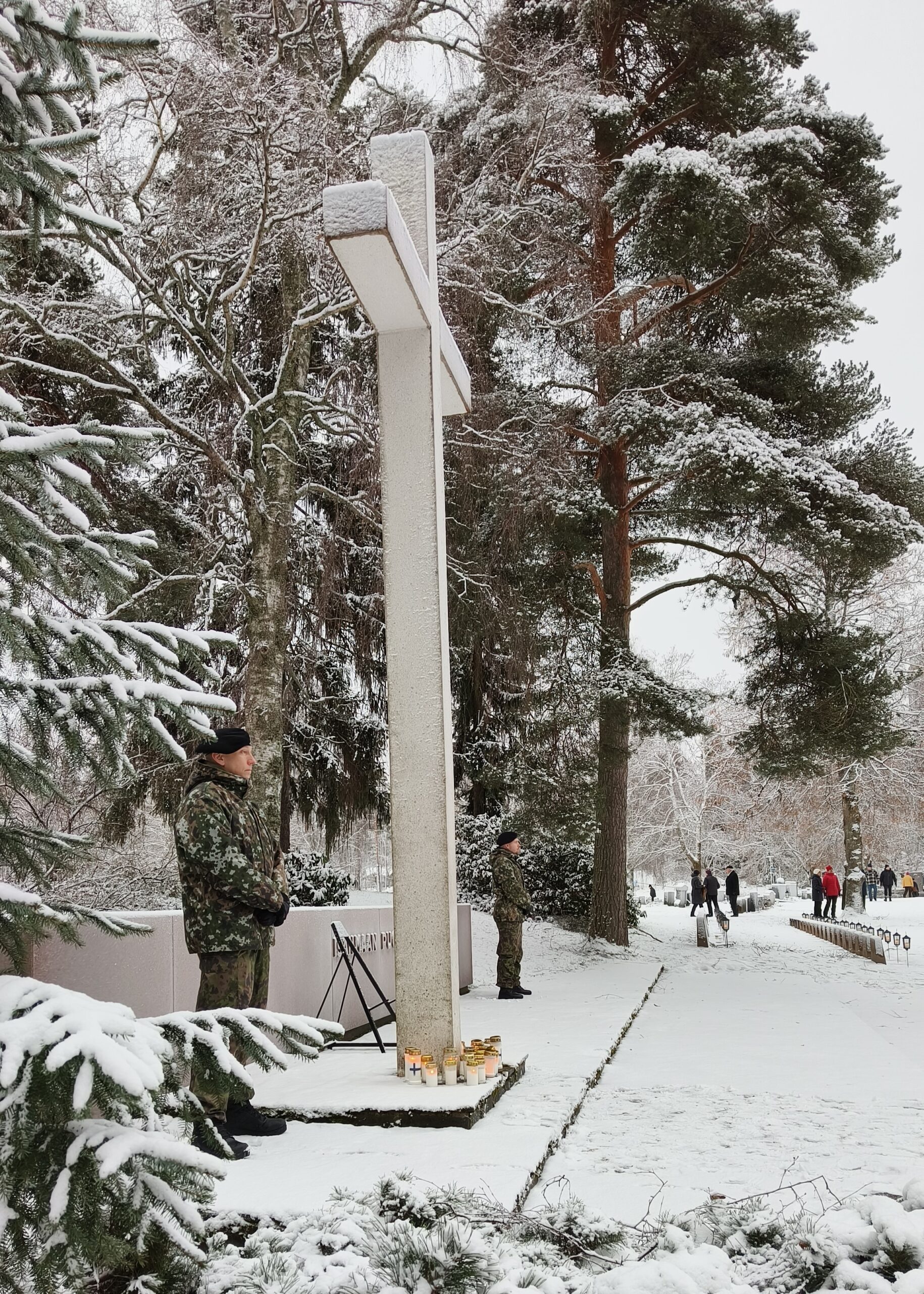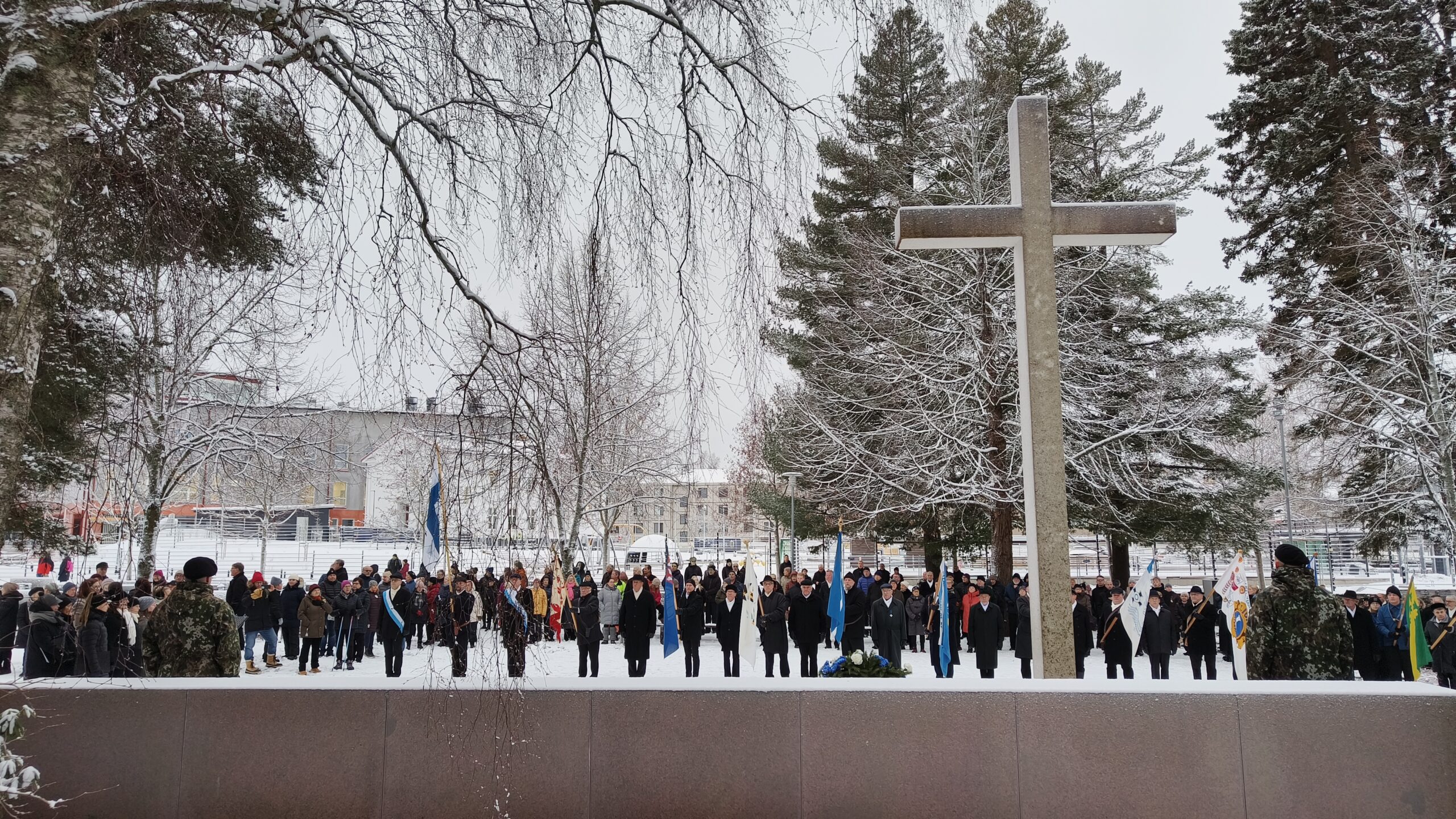 Katselijoita kerääntymässä Valkeakosken sankarihautamuistomerkille
